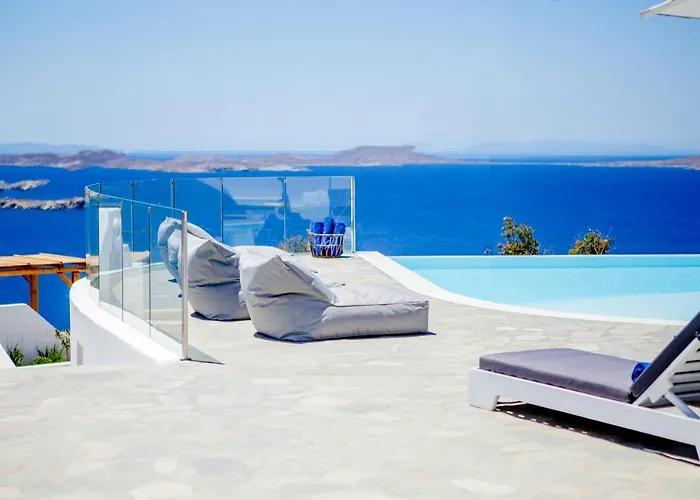 Situé à moins de 2 km de la Rue Matoyianni, Villa Agnandi Cielo comprend une piscine à débordement, ainsi qu'un jacuzzi pour se détendre. Bénéficiant d'un accès à un patio, la villa vous invite à visiter le musée archéologique de Mykonos, situé à 25 minutes à pied.